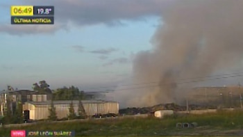 Unas 25 dotaciones de bomberos combatían esta mañana el incendio de una fábrica de reciclado de neumáticos en la localidad bonaerense de José León Suárez, partido de San Martín.