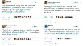 Bajo el hashtag #VoluntarioDocenteNoAlParo, cientos de usuarios, entre quienes hay docentes jubilados y profesionales de distintas áreas que van desde la ingeniería hasta la educación física, acompañaron la iniciativa.