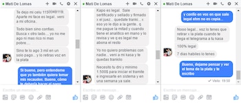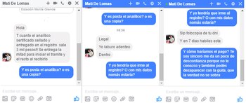 El que hace la publicación tiene un nombre falso: "Mati de Lomas". El post tiene como ubicación Monte Grande y la mayoría de sus contactos son de Lanús. Todo sirve para despistar. Sin embargo es necesario un mínimo de confianza para que el comprador acepte el diálogo. Y es en ese límite difuso donde se cometen los errores.