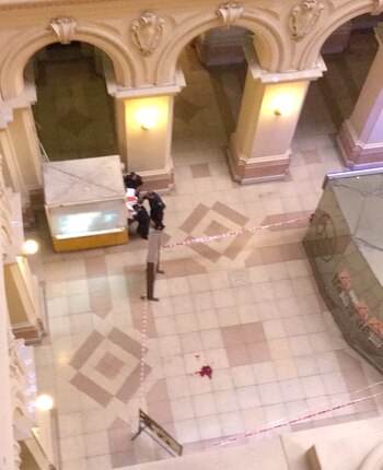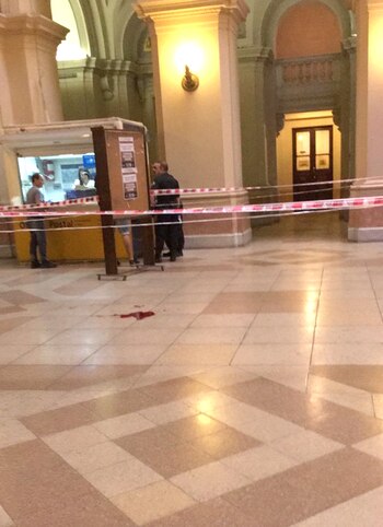 El momento posterior al hecho fue fotografiado por varios de los testigos. En algunas de las imágenes se observa una pequeña mancha de sangre que quedó en el lugar y el vallado perimetral. Intervienen efectivos de la Comisaría Tercera de la Policía Federal.
