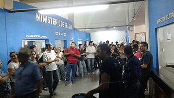 Se trata de empleados de la empresa Task Solutions que se concentraron frente al edificio de la cartera de Trabajo provincial para reclamar la conservación de su fuente laboral.