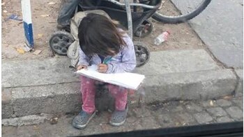 La escena no lo dice todo. Una niña hace sus deberes sentada en el cordón de la vereda. Puede tener seis años. Acaso siete. Protagoniza una historia. Pero nadie sabe su nombre.