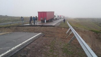 La turbulenta jornada dejó una postal impresionante este sábado, luego de que la Ruta Nacional N° 3, a la altura del kilómetro 1673, cerca de Garayalde, colapsara y se partiera en dos por la fuerza del río. La ruptura provocó la caída de la caja de un camión, que terminó sobre el curso de agua.