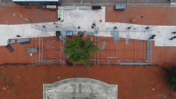 Mientras tanto, los tubos de lo que nunca sería la carpa o la escuela itinerante se iban apilando en el suelo. Otro grupo de obreros los levantaba y los subía a un camión con acoplado. Antes de las cinco de la tarde, cuando empezó el abrazo simbólico, de la escuela itinerante no quedaba nada más que el recuerdo de la violencia de un día atrás.