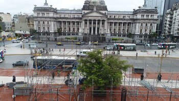 Los representantes de CTERA, encabezados por el secretario de Organización, Esteban Sueyro, intentaron frenar al trabajo de los obreros. Pero sin éxito. Sueyro le puso en la oreja un teléfono a uno de las autoridades de la comisaría 6a. Del otro lado de la línea estaba el Defensor del Pueblo, Alejandro Amor. El hombre de la Policía porteña se alejó para hablar. Al rato volvió y devolvió el aparato al dirigente gremial. "Vos traeme el permiso y te armo todo", le dijo. "En diez minutos llega el permiso de Larreta", le respondió Sueyro. "Ese es el mismo hombre que el domingo nos dio dos minutos para parar de armar y a los 30 segundos mandó a reprimir", remarcó, enojado porque un policía de civil lo seguía y lo filmaba.