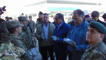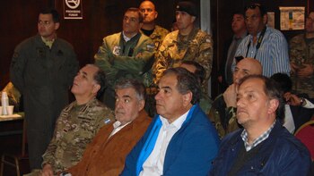 Ambas autoridades asistieron junto al gobernador de Chubut, Mario Das Neves, y el secretario de Servicios Logísticos para la Defensa y Coordinación Militar en Emergencias, Walter Ceballos, a una exposición sobre el despliegue del personal y las zonas más críticas, que estuvo a cargo del Comandante de la Brigada Mecanizada IX, General de Brigada Daniel Varela.