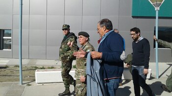 El ministro de Defensa, Julio Martínez, acompañado por el el Jefe del Estado Mayor Conjunto de las Fuerzas Armadas, Teniente General VGM Bari del Valle Sosa, supervisó este miércoles la ayuda que realizan los efectivos y medios del Ejército, la Armada y la Fuerza Aérea en las población damnificada por las inundaciones en la ciudad de Comodoro Rivadavia, provincia de Chubut.
