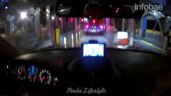 Sobre la autopista Illia, ambos vehículos chocan y desplazan la barrera del peaje para seguir viaje. Quedó claro que su intención no era parar casi en ningún momento y que las reglas no importaban, poniendo en riego la vida de otros automovilistas y peatones.