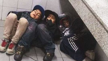 Tres hermanos duermen cada noche en uno de los baños que tiene la estación de Retiro. Son chiquitos y se cobijan del frío en un rincón, debajo de las piletas donde los pasajeros se lavan las manos.