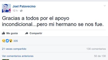 "Gracias a todos por el apoyo incondicional pero mi hermano se nos fue", escribió su hermano Joel en las redes sociales, que se llenaron de oraciones y mensajes de pésame hacia el joven y la familia.