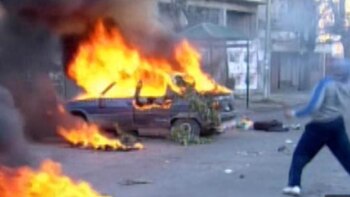 Los desmanes ocurrieron en el centro de Glew, partido de Almirante Brown, en cercanías de la comisaría 7º de esa localidad, donde se quemaron neumáticos, basura y hasta automóviles que estaban estacionados frente a la seccional.