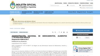 A través de la disposición 9289-E/2017, que fue publicada este viernes en el Boletín Oficial, la Administración Nacional de Medicamentos, Alimentos y Tecnología Médica (ANMAT) prohibió el uso y la distribución de dos presentaciones de hisopos porque la empresa que los importa y comercializa no cuenta con "las debidas autorizaciones".
