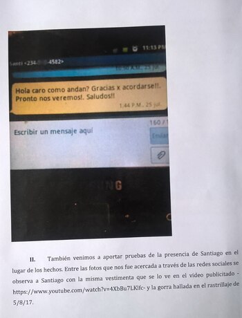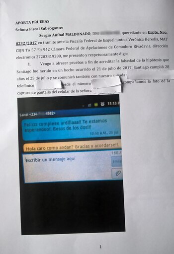 Además, aportaron una captura de un SMS enviado desde el teléfono de Santiago el día de su cumpleaños -el 25 de julio- a una familiar