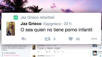 Por lo pronto, Cartasegna pudo establecer que los videos en que Pane compartió sus actos sexuales fueron enviados desde el IP de la casa de la joven. Hay también una posible cómplice, otra chica de La Plata y una celebridad de Snapchat: "Jaz" Grieco. Un video de apenas un segundo de Grieco moviendo su cola desnuda acumula hoy más de 100 mil visitas en el célebre sitio porno Xvideos.