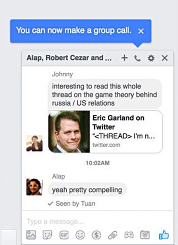 Los elegidos verán el ícono del teléfono en la parte superior del chat grupal, al ingresar al Messenger desde la PC.