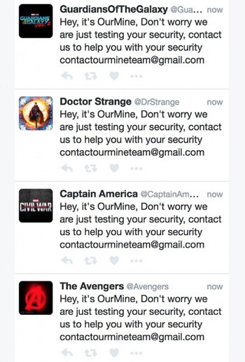 OurMine se describe como "un grupo de hackers buenos" que sólo busca con estas acciones dejar en evidencia la falta de medidas de seguridad para evitar este tipo de incidentes.