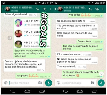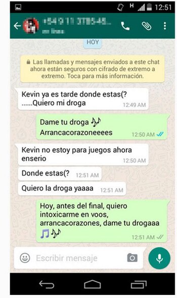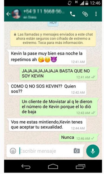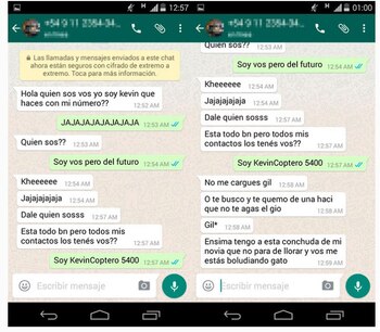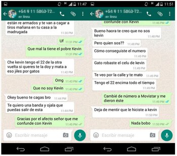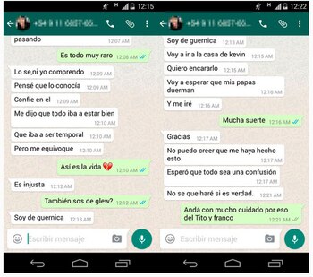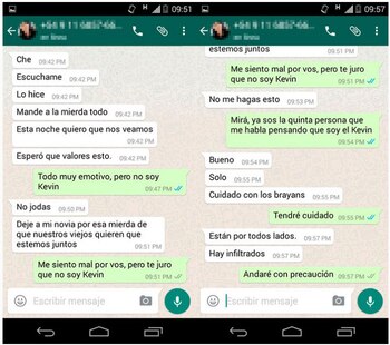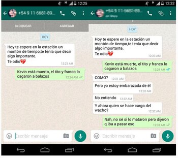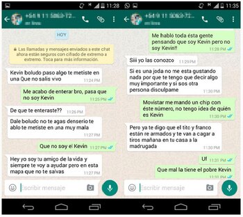 A continuación se ve una captura donde se ve que otra persona le advierte que se cuide porque "Tito y Franco están re armados" y aparentemente buscan a Kevin para matarlo. ¿Será un problema de amores? ¿Por qué está perseguido? Se siguen acumulando las incógnitas y la historia se hace cada vez más atrapante.