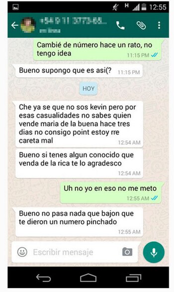 Cuando asume que no es Kevin con quien habla igual aprovecha para preguntarle a Rama si sabe de alguien que pueda venderle "maría de la buena".