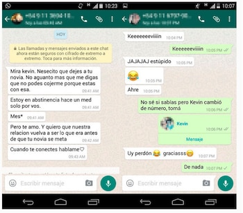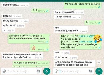 Luego vuelve aparecer la misma joven de los primeros chats que se sorprendió por la foto del "hombrezuelo" en el perfil y se presenta como la novia de Kevin. Rama le cuenta que estuvo en contacto con "la futura novia" de su pareja y, como era de esperar, a la chica eso no le cayó nada bien.