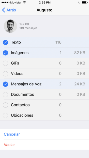 Ahora se podrán borrar los mensajes y el distinto material multimedia recibido por medio del servicio de mensajería de manera individualizada.