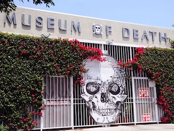 Museum of Death es un lugar no apto para impresionables. Ubicado al 6000 de Hollywood Boulevard, la fachada plagada de calaveras augura una experiencia terrorífica en su interior.
