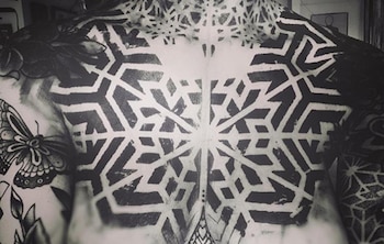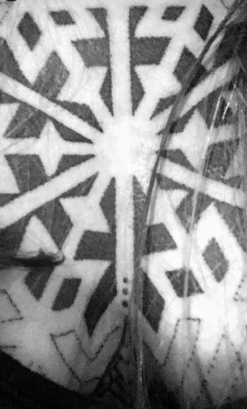 La zona elegida fueron sus pechos, sus pectorales, más específicamente. Uno de los pocos espacios en los que no tenía ningún dibujo. El nuevo tribal abarca casi todo su ancho y va de hombro a hombro.