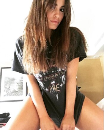 "Uff, fin de entrevistas en Chile", escribió la actriz y cantante en Instagram junto con una foto sobre la cama en la que lleva puesta sólo una remera.