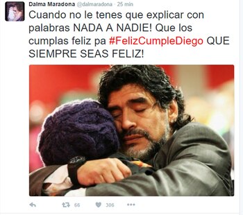 En el cumpleaños 56 de Diego Maradona y a la distancia, Dalma Maradona utilizó su cuenta de Twitter para enviarle un mensaje a su papá, a pesar del distanciamiento que mantienen desde hace unos meses.