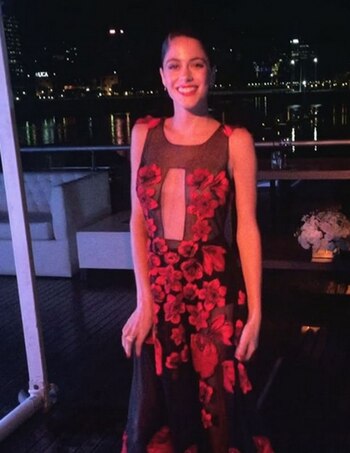 Ambas jóvenes lucieron el mismo vestido, en diferentes eventos. Para la gala de Revista Caras Tini usó un modelo de la línea que diseña "la China" en color negro y rojo. Días después, en una fiesta en México, la novia de Vicuña lo lució pero en color negro y blanco.