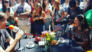 Y ese día fue este 15 de diciembre. Y el escenario, la entrada de FM Metro. Una mesa en la vereda, dos sillas, un par de cafés, mariachis. Un desayuno de a dos, frente a miles de oyentes, y a los curiosos agolpados a metros de un reencuentro que tan lejos estuvo, en tiempo y distancia.