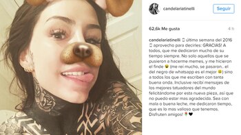 Ahora, unos días después, Cande agradeció a todos por sus palabras. No solamente por las relacionadas con el último tattoo sino por todas las que fans y haters le dedicaron en el año.