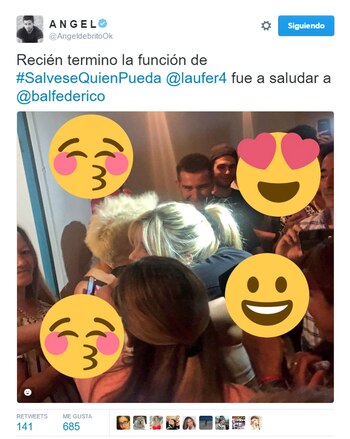 En la noche del miércoles 28, la bailarina fue a ver la obra de su compañero de baile en el Teatro del Sol. En su cuenta de Twitter, declaró: "¡Lo que me reí en @SalveseQPuedaok! Muy, muy, muy divertida, ¡Felicitaciones! Vayan a verla".