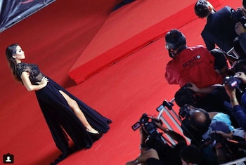 Lali se robó todas las miradas al lucir un vestido negro muy provocativo, con transparencias en la alfombra roja del tradicional festival. En Instagram, compartió imágenes de este look tan sexy.