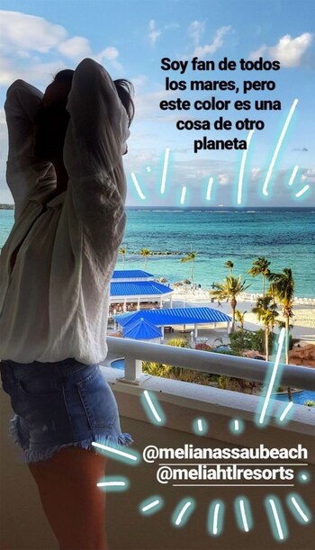 En una de las imágenes aparece Gimena en el balcón de la habitación del lujoso hotel que eligieron para hospedarse, el Meliá Nassau Beach, un all inclusive con vista al mar.