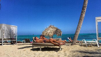 Más tarde, Nicolás también colgó en dicha red social una postal de sus días en el Caribe. En la imagen se observa a ambos descansando debajo de una palmera en una hermosa playa.