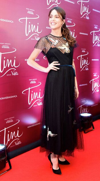Tini descubre sus piernas, abandona los bordados y los excesos, y lo mejor… ¡se la ve a ella! Sin embargo, con otro modelo de zapatos y belleza de pies hubiera estado muy bien.