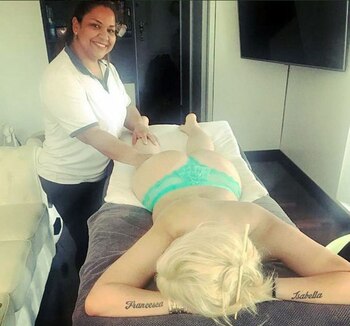 En Instagram, también compartió una foto acostada en una camilla, mientras recibía una sesión de masajes. Una vez más, desplegó tosa su sensualidad y aprovechó para generar un gran revuelo en la red social.