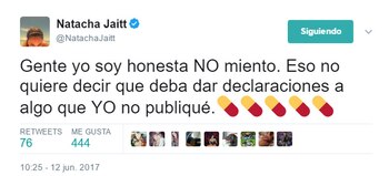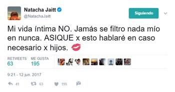 Natacha utilizó las redes sociales para decir que no iba a dar declaraciones sobre un tema que ella no dio a conocer: "Jamás se filtró nada mío nunca. Así que hablaré en caso de que sea necesario por los hijos".