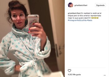 Con mucho humor, después publicó otra foto en bata y despeinada y explicó: "¡En realidad lo recibí así el eclipse pero la foto anterior representaba mejor lo que quiero decir! #InstagramNoEsLaVida #Besis!"
