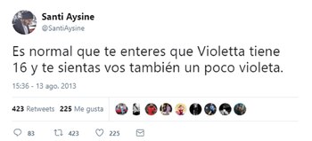 "Es normal que te enteres que Violetta tiene 16 y te sientas vos también un poco violeta", escribió el cantante de Salta la banca el 13 de agosto de 2013.