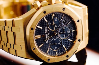 La colección "Royal Oak" se transformó en un icono moderno desde su lanzamiento en 1972, gracias a su singular bisel de formato octogonal y su brazalete integrado. Uno de los modelos más representativos de la firma es el cronógrafo realizado en oro de 18 quilates comercializado por 56.000 dólares.