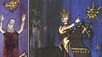 Los dibujos pertenecen a los Annales Laurissenses, un manuscrito francés del siglo XII, en el que se detalla el sitio al castillo de Sigiburg, en el año 776, por parte de los Sajones.