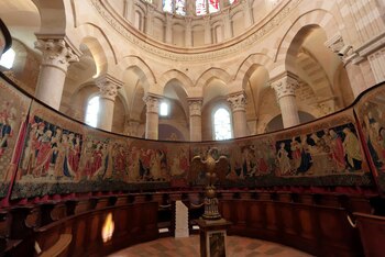 En la nave de la Notre-Dame de Beaune, en Borgoña, Francia, se encuentra un increíble tapiz, con datación del siglo 15, en el que se ilustran diferentes eventos de la vida de la Virgen María.