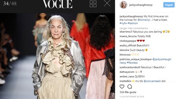 American Apparel descubrió a Jacky O'shaughnessy y la lanzó a la fama. Comenzó a modelar a los 60 años de edad. Además de convertirse en modelo gracias a su cabellera gris, que muchos consideran su mayor atractivo, se convirtió en musa de lencería, rompiendo con el paradigma de que debían ser modelos de 20 años las que luzcan estas prendas.