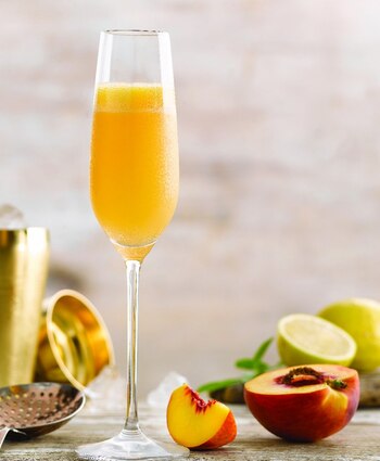 – Bellini 75: Gin, helado de durazno con Cosecha Tardía, vino espumante Extra Brut, perfume de limón.
