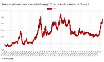 Para terminar, en el caso de la oleaginosa, los precios están influenciados también por lo que está sucediendo en los mercados de aceites vegetales en general, y en el mercado de aceite de soja en particular. En la última semana, los futuros de aceite de soja en Chicago alcanzaron con máximos desde julio de 2008.