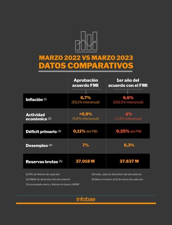 - Aprobación y primeras alertas: el acuerdo inició en medio de un contexto que forzó a una primera reconsideración sobre los números plasmados en el programa, por los efectos netos negativos de la invasión de Rusia a Ucrania, que provocó el salto en los precios internacionales de las materias primas y también de la energía, con fuerte impacto en la economía nacional y mundial.