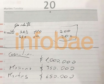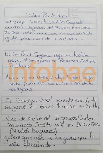 En las hojas de las agendas de este "secretario" figuran desde dibujos con diseños de camisetas para la campaña política de un candidato, la cantidad que se tenían que imprimir y el día que debían entregarse; el dinero que debía entregar "Cosentini" (léase Luis Cosentini) quien era presidente del Instituto de Viviendas y Urbanismo de la provincia de Jujuy (IVUJ), y luego Ministro de Infraestructura; y los supuestos pagos que debía hacer la Tupac Amaru al empresario "Fíad" (Guillermo Fíad), quien está siendo investigado por presunto lavado de activos.