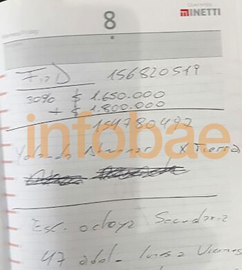 En otra de las hojas figura el número de teléfono de "Fiad" que sería Guillermo Fíad, empresario vinculado a Milagro Sala e investigado por la Justicia, y cuyas propiedades fueran allanadas en diciembre de 2017.