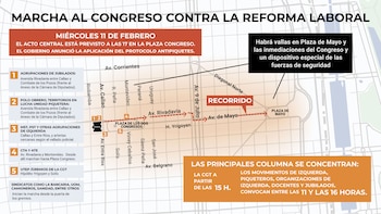 El epicentro de la movilización será la Plaza Congreso, aunque se prevé que las columnas comiencen a concentrarse desde el mediodía en distintos puntos del centro porteño. Entre ellos el Obelisco. La Unión de Trabajadores de la Economía Popular (UTEP), cuyo secretario general es Alejandro Gramajo, convocó a movilizar desde las 14.30. En un comunicado, la organización expresó: “Este miércoles movilizamos en todo el país contra esta reforma laboral que recorta derechos a los trabajadores. Por derechos y dignidad para los trabajadores y trabajadoras de la economía popular. Sin poder popular no hay justicia social”. Las organizaciones anticiparon, además, movilizaciones en distintas provincias en rechazo a la iniciativa oficial.